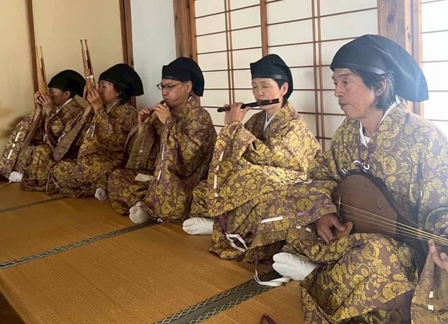 松代雅楽協会に所属する5人の演奏家からなる小編成の雅楽ユニット「A-雅楽」の演奏会。