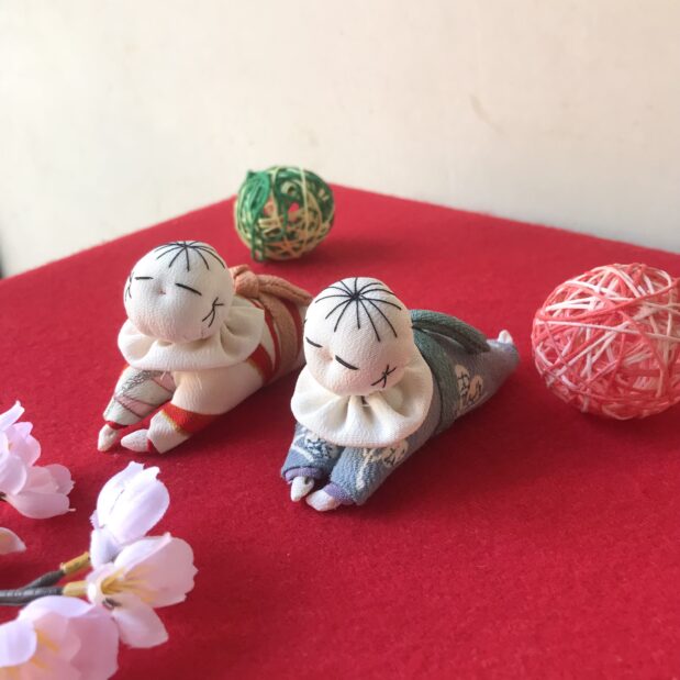 「はいはい人形」は、平安時代に子供の病の身代わりのため、枕元に飾った人形「這子(ほうこ)人形」がもとになっています。
